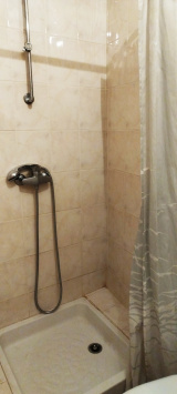 -une salle d'eau avec douche et WC, emplacement lavabo et machine à laver