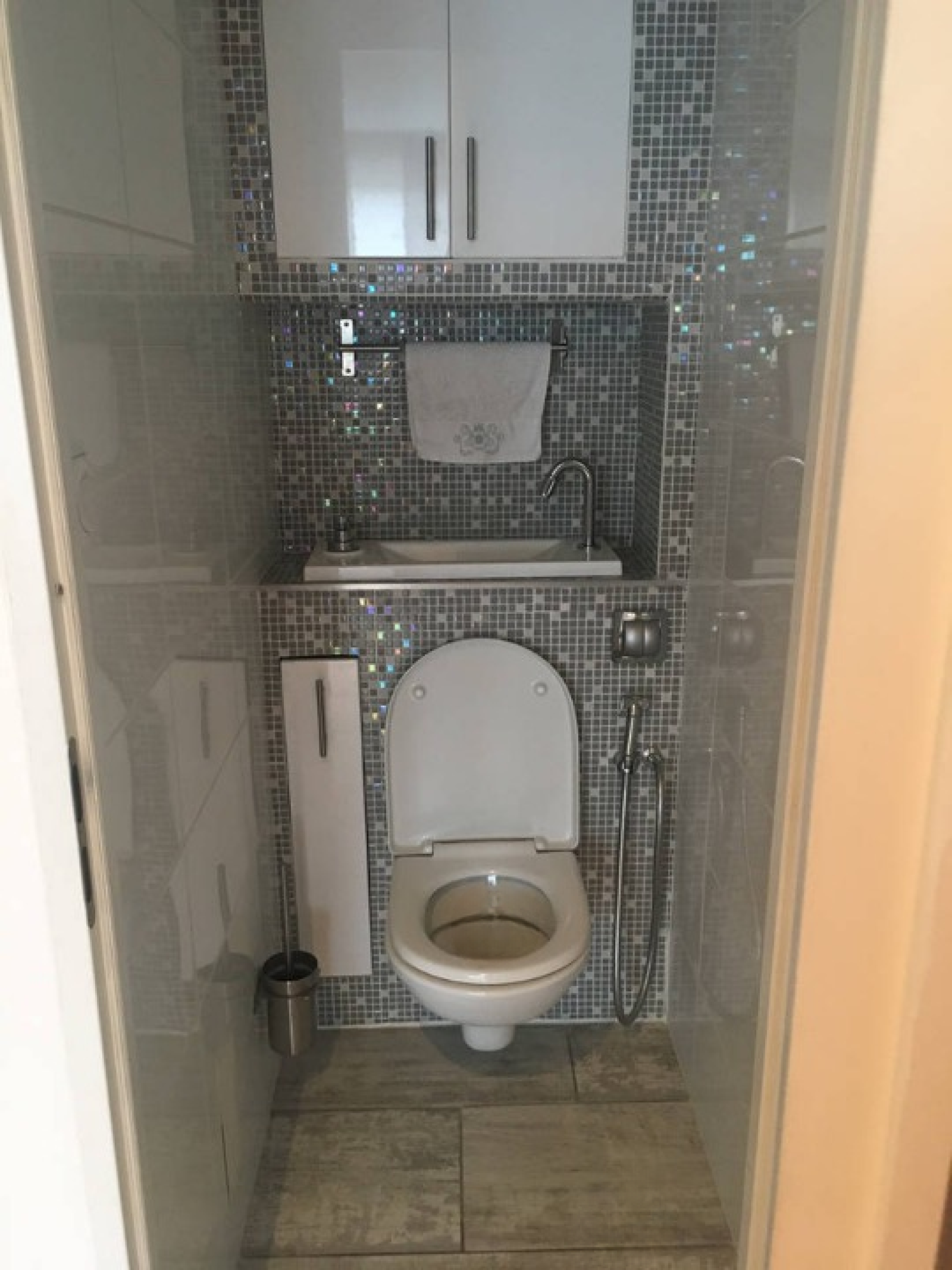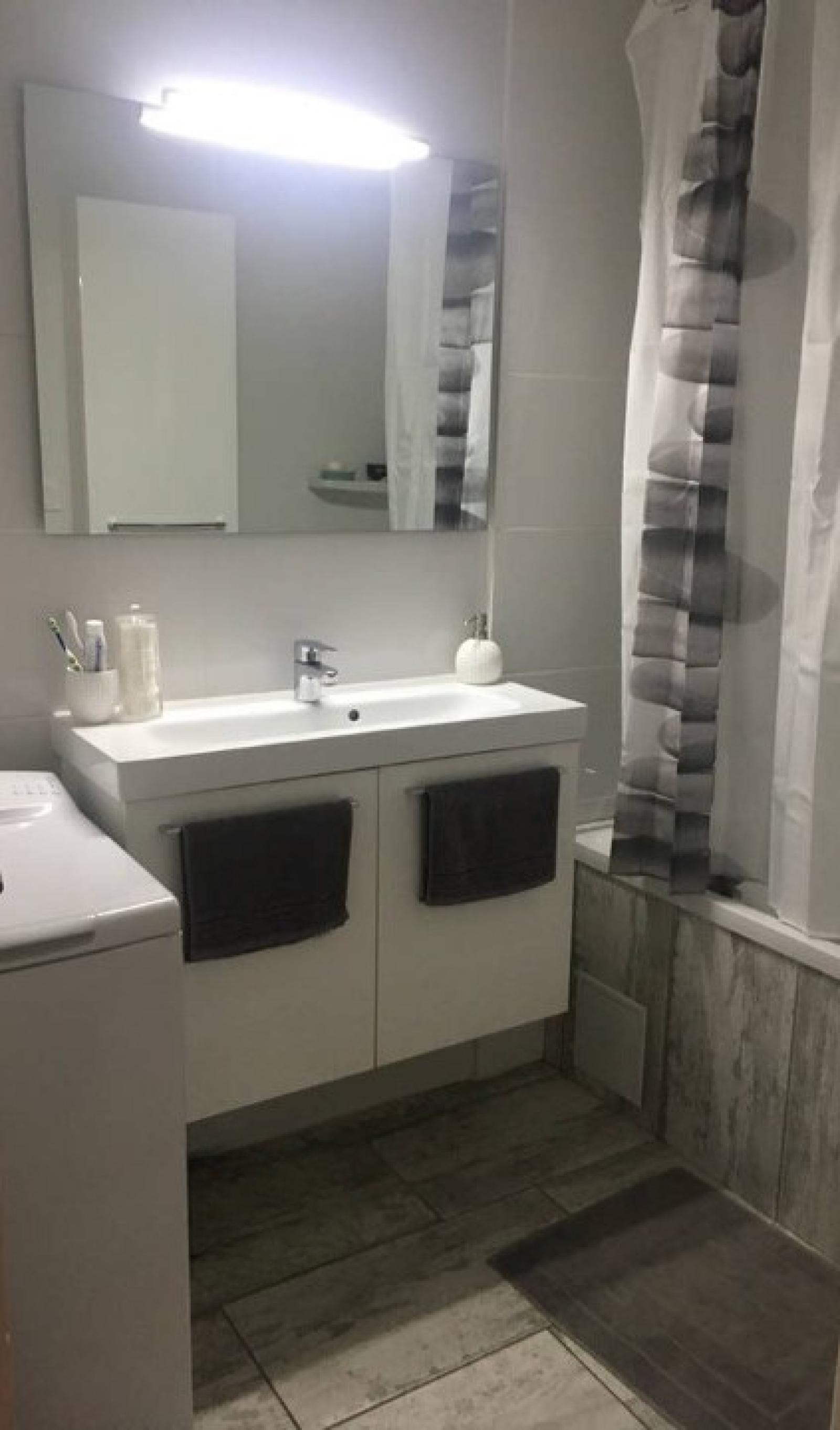 Une salle de bain et un WC suspendu séparé