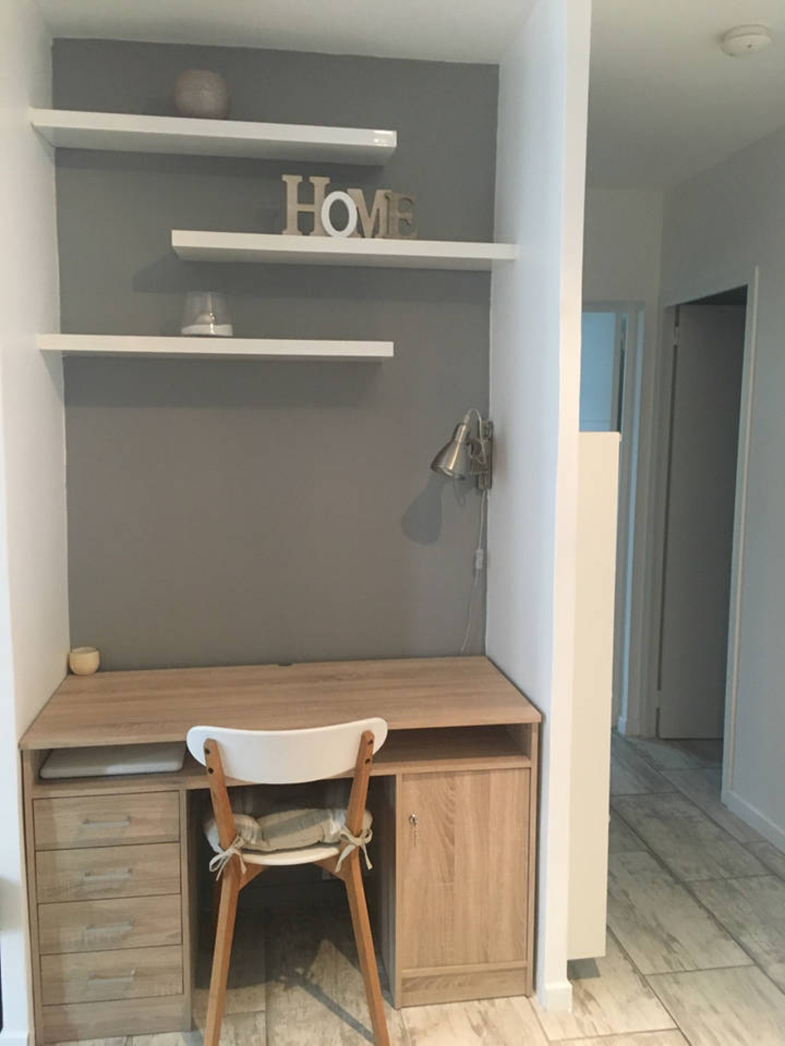 Une grande entrée avec un coin bureau