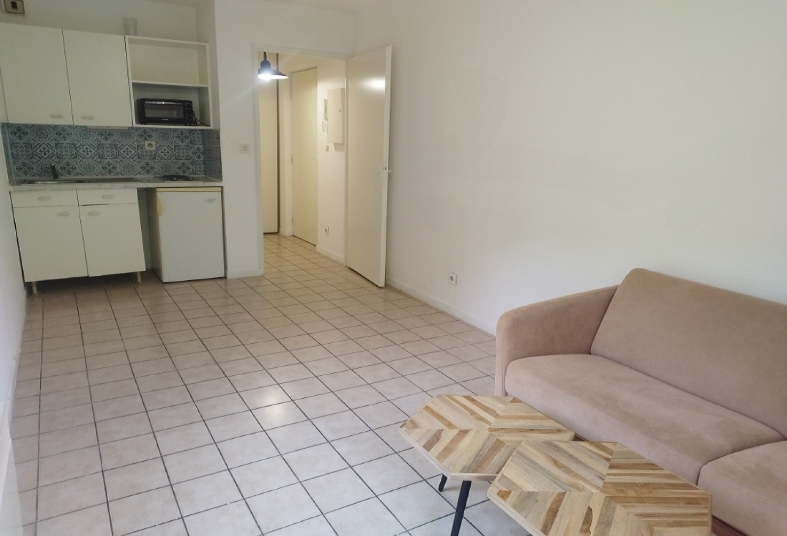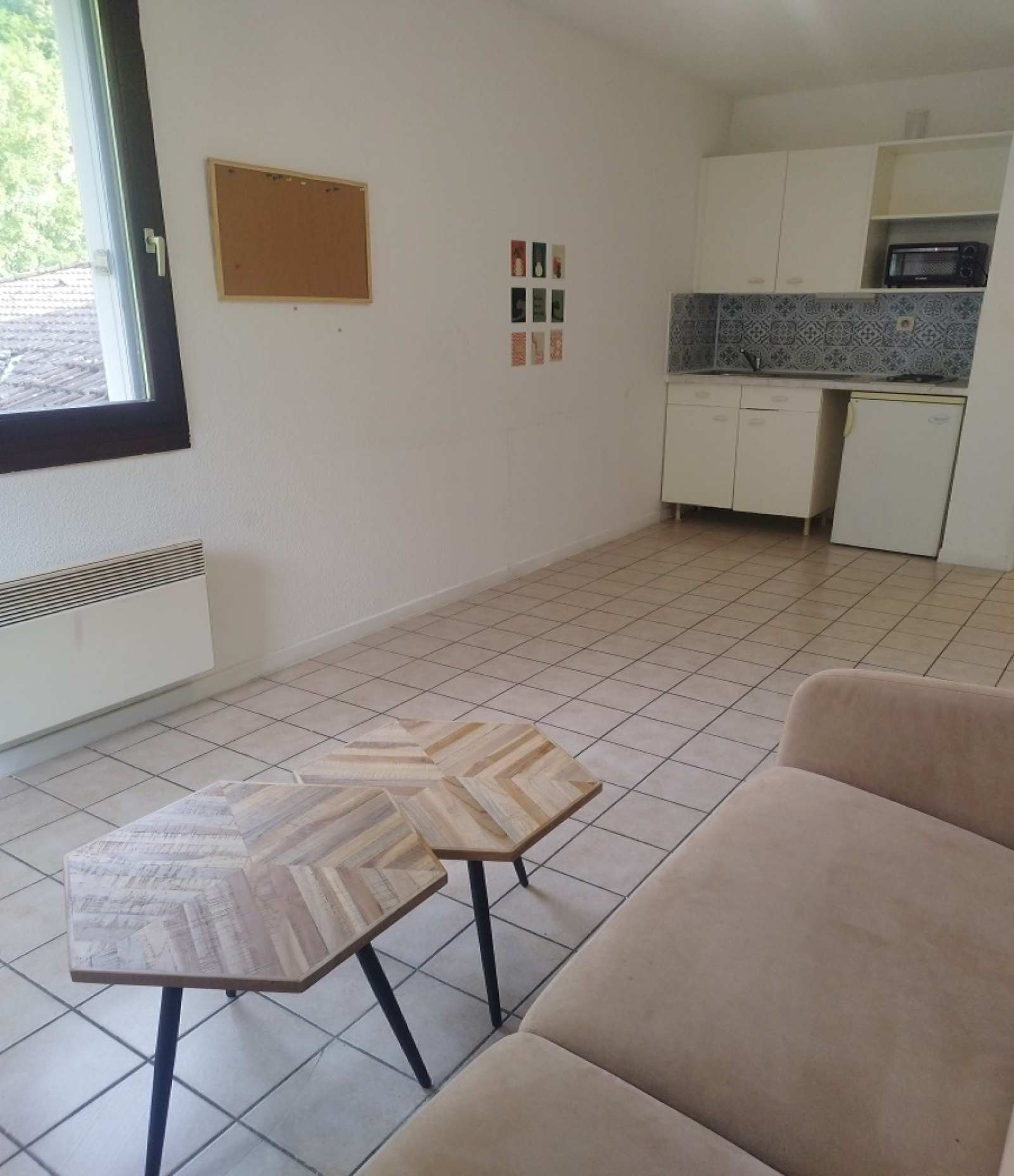 - Une pièce de vie très lumineuse avec coin kitchenette offrant une vue dégagée sans vis-à-vis sur la verdure
