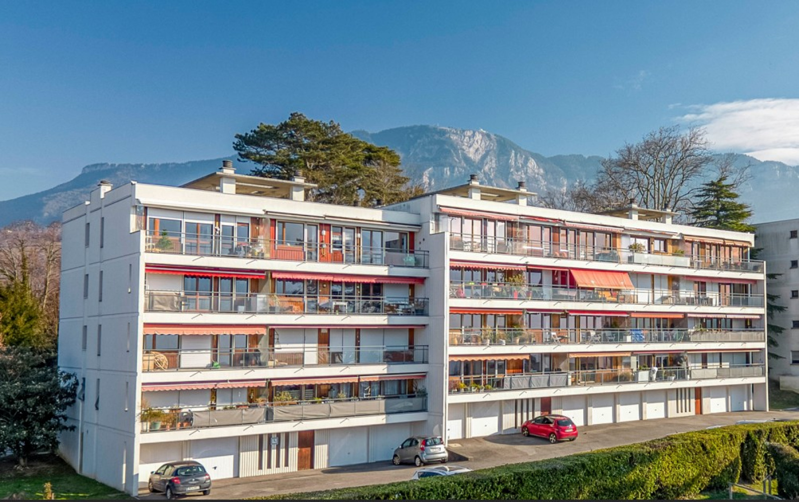 Au calme, au cœur d'un grand parc arboré, très beau grand T3 à la vue dégagée sur la ville, le lac et les montagnes.